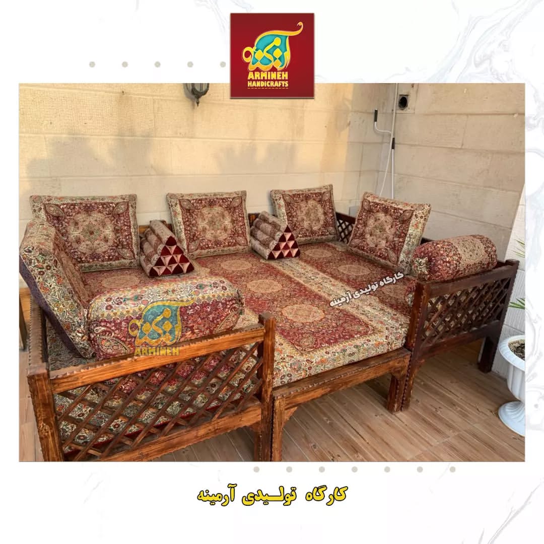 پشتی سنتی شاه نشین ترمه ست ۷ تکه شامل ۲ عدد پشتی، ۲ عدد بالش لولهای، ۲ عدد پشتی مثلثی و یک تشک است که داخل تشک این شاهنشین از فوم ۵ سانتیمتری استفاده شده است. در صورتی که تصمیم به شست و شوی ترمههای شاهنشین را دارید، از آب داغ استفاده نکنید. شویندههای قوی و آب داغ میتواند به ترمههای شما آسیب برساند.