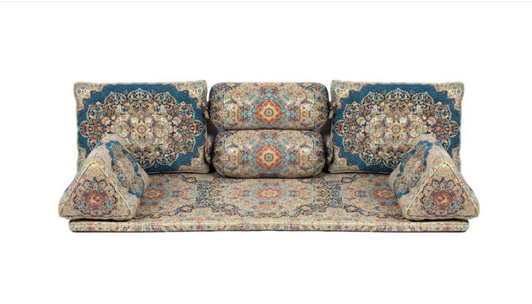 پشتی سنتی شاه نشین ترمه ست ۷ تکه شامل ۲ عدد پشتی، ۲ عدد بالش لولهای، ۲ عدد پشتی مثلثی و یک تشک است که داخل تشک این شاهنشین از فوم ۵ سانتیمتری استفاده شده است. در صورتی که تصمیم به شست و شوی ترمههای شاهنشین را دارید، از آب داغ استفاده نکنید. شویندههای قوی و آب داغ میتواند به ترمههای شما آسیب برساند. توضیحات مهم درباره تشک سرویس شاهنشین: تشک شاهنشین دارای زیپ بوده که به جهت تسهیل در شستو شو میباشد. داخل تشک به انتخاب شما ابر و یا فوم استفاده میشود. ضخامت داخل تشک قابل تغییر تا ۱۰ سانتیمتر میباشد. سایز استاندارد تشک ۲۰۰*۷۵ سانتیمتر(۲۰۰ سانتیمتر طول و ۷۵ سانتیمتر عرض) است. توجه داشته باشید فوم حالتی سفت و سخت دارد که دوام و ماندگاری بالاتری نسبت به ابر دارد. ابر(اسفنج مبلی ۳۰ کیلویی) که برا نشستن خیلی مناسبتره و قیمت بالاتری نسبت به فوم دارد. در صورتی که تمایل به سفارش اختصاصی نظیر ضخامت و سایز تشک، کم و یا زیاد کردن بخشی از اعضای شاهنشین دارید، لطفا با شماره 57 89 269 0913 تماس بگیرید.