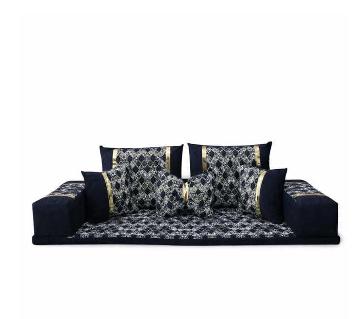 پشتی سنتی شاه نشین مخمل مبلی ست 8 تکه شامل 2 عدد پشتی، 2 عدد کوسن، 2 عدد بالش لوله ای، 1 عدد تشک و 1 عدد پاپیونی است.