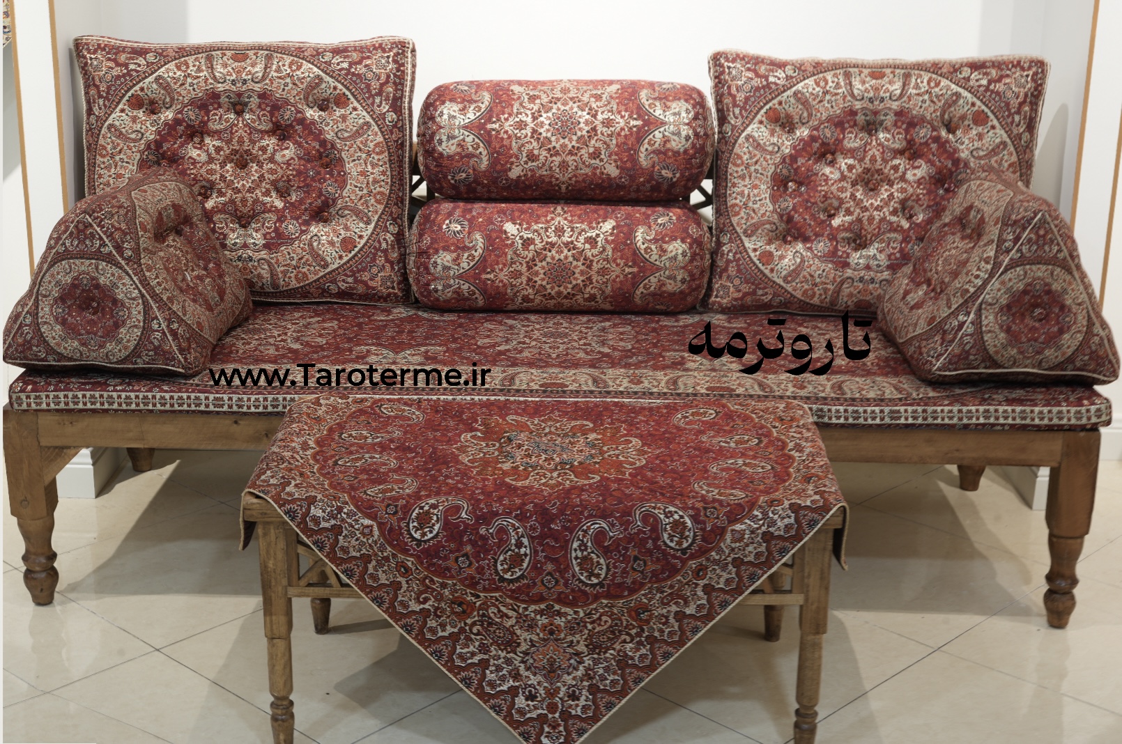 پشتی سنتی شاه نشین ترمه طرح شاهسوند – ست 7 تکه