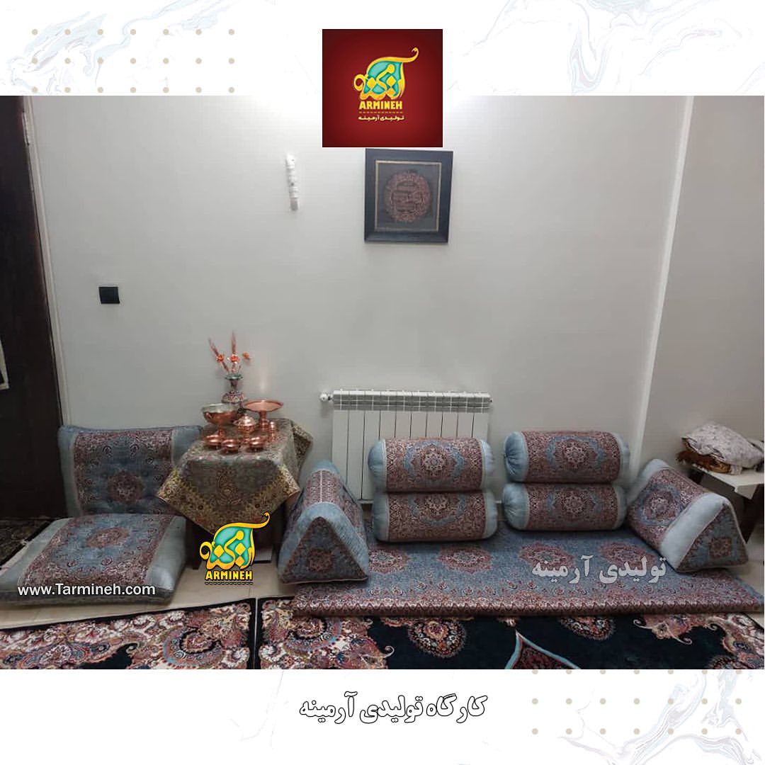 پشتی سنتی شاه نشین ترمه طرح نرگس کنارمخمل – ست ۷ تکه فیلی