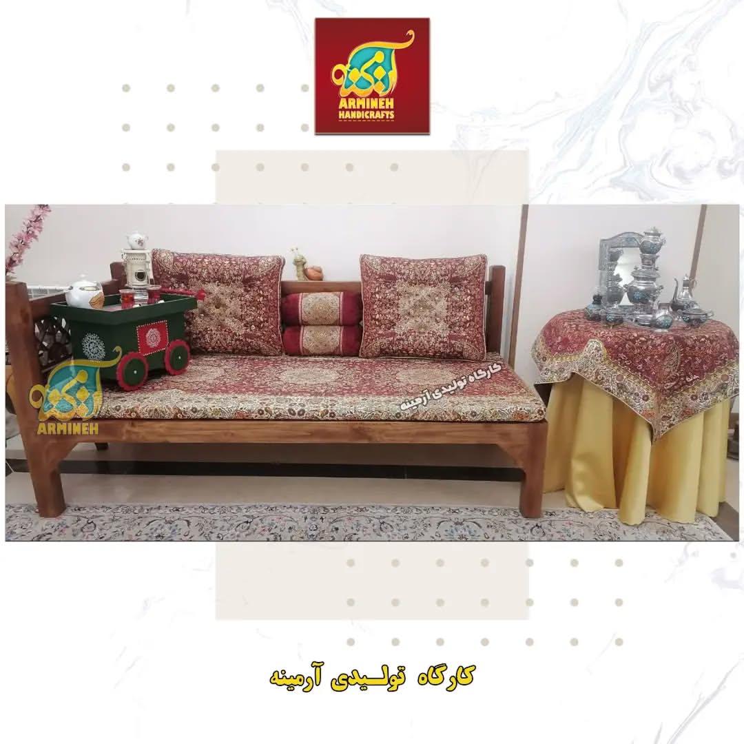 پشتی سنتی شاه نشین ترمه طرح افشار – ست ۷ تکه عنابی