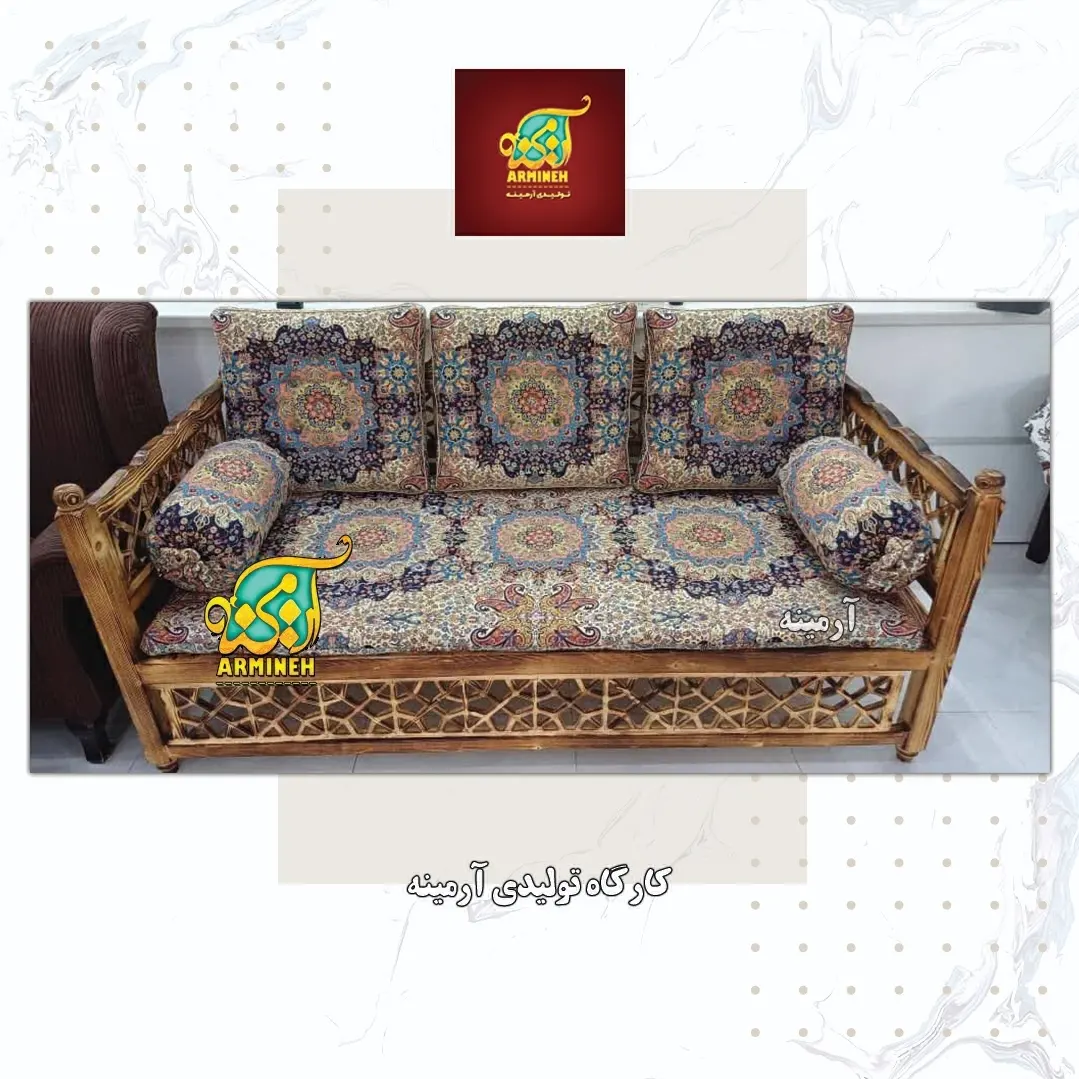 پشتی سنتی شاه نشین ترمه طرح اردیبهشت خاتم – ست ۷ تکه پلاس